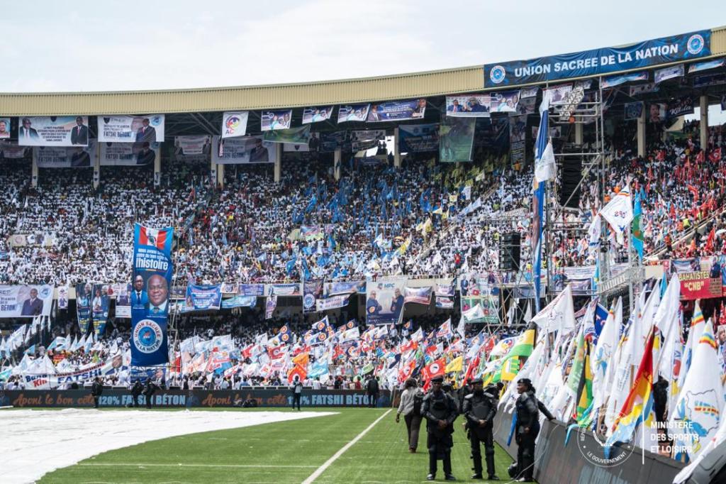 L’activité sur la sortie officielle de l’Union Sacrée de la Nation de ce samedi 29 Avril 2023, a vécu avec succès. Aucun dégât matériel ni humain enregistré pour ne pas dire « Zéro mort, zéro blessé » paraphrasant le Ministre des sports et loisirs. François Claude Kabulo Mwana Kabulo a apprécié le comportement civique dont a fait montre le public ayant été au stade ce jour.